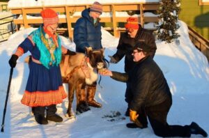 Sámi people call their home territories “Sapmi”. These lands lie across the northern parts of Norway, Sweden, Finland and the Russian Kola Peninsula. There are 100,000 Indigenous inhabitants in this area. Ancestors of the present-day Sámi have inhabited the area since the birth of Christ and likely much longer. At least 30,000 people of Sámi ancestry live in North America.